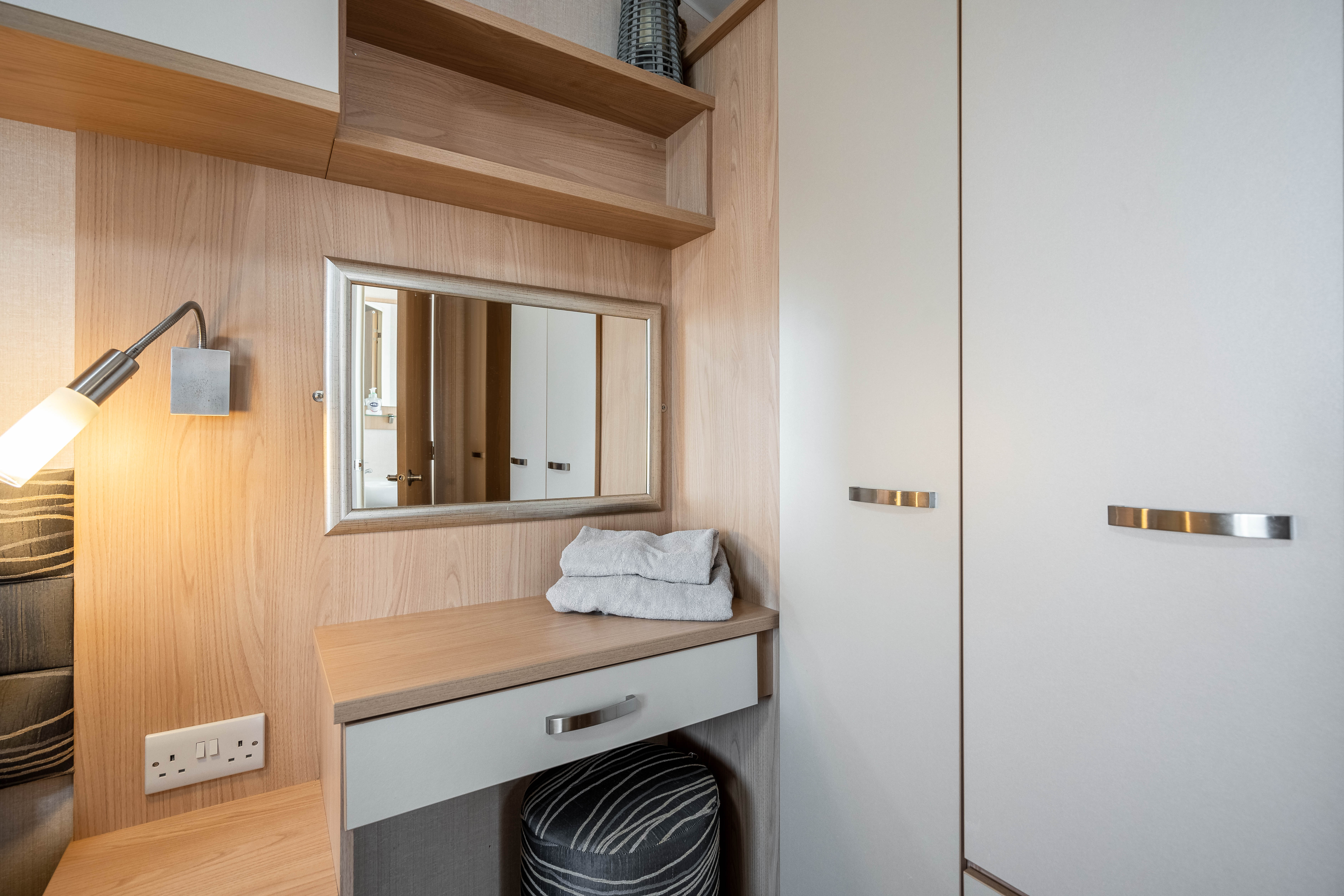 Two bedroom caravan, with additional sofa bed in lounge for up to six people. Fully fitted kitchen, shower room with additional en-suite WC in master and gas combi boiler.